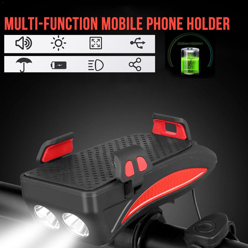 Bicycle Bike Light With Mobile Phone Holder Stand Multi Functional For Outdoor Riding Cycling Headlight Horn 2000mAh Charging
