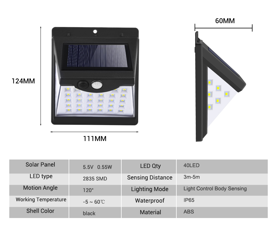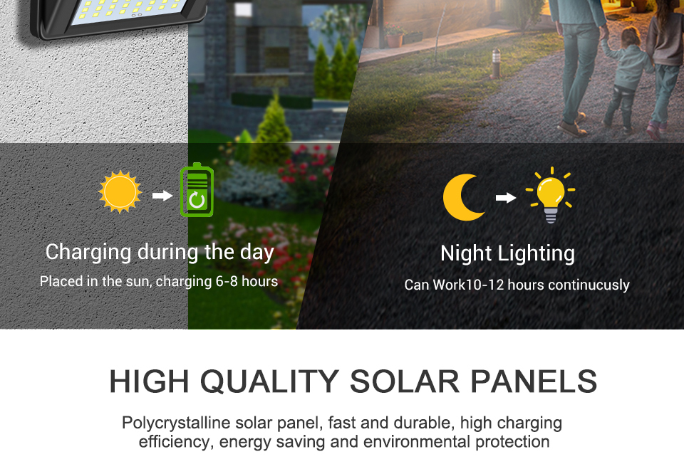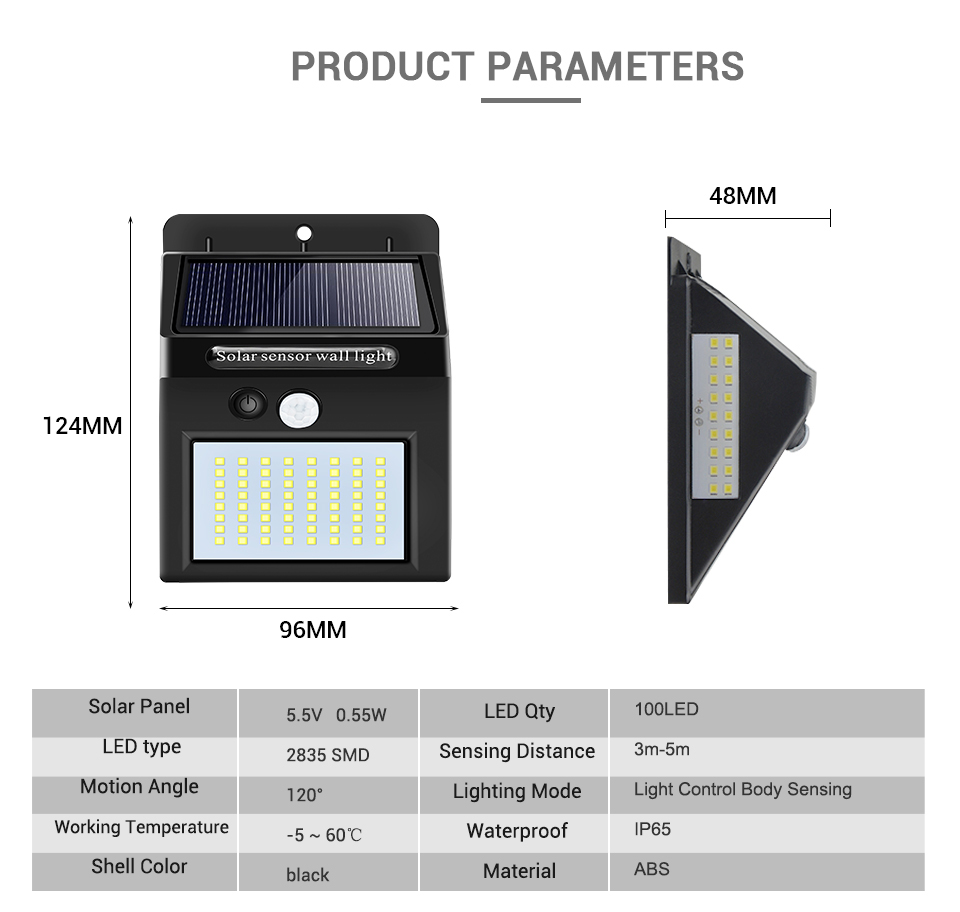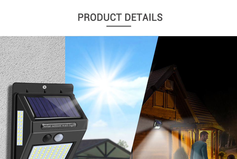 3. High Brightness 100 LED Lamp Beads Motion Detection Solar Lamp, IP65 Waterproof Grade, Durable, Efficient, Environmentally Friendly Note: Due to the difference in display and lighting effects, the actual color of the product it may be slightly different, thank you!