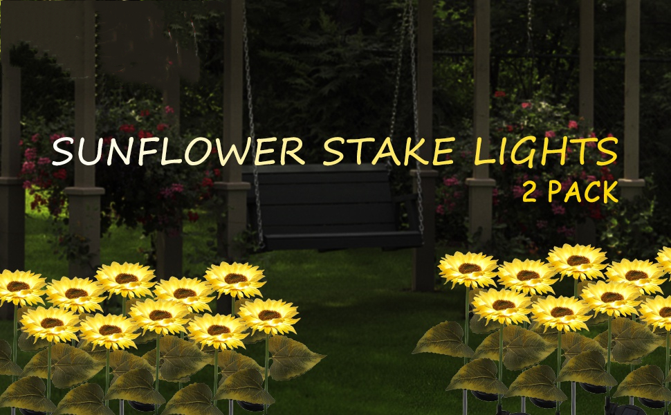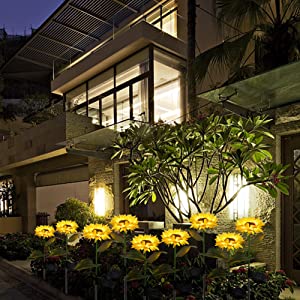 🌻閵嗘€婨AUTIFUL SUNFLOWER閵嗘叄his solar flower lights includes 2 packs of sunflower lights, the artificial sunflower petal are made of fabric which are exquisitely designed to imitate real sunflower, these gorgeous sunflower will add a vague beauty on the night, are the finishing touch on your beautiful garden.