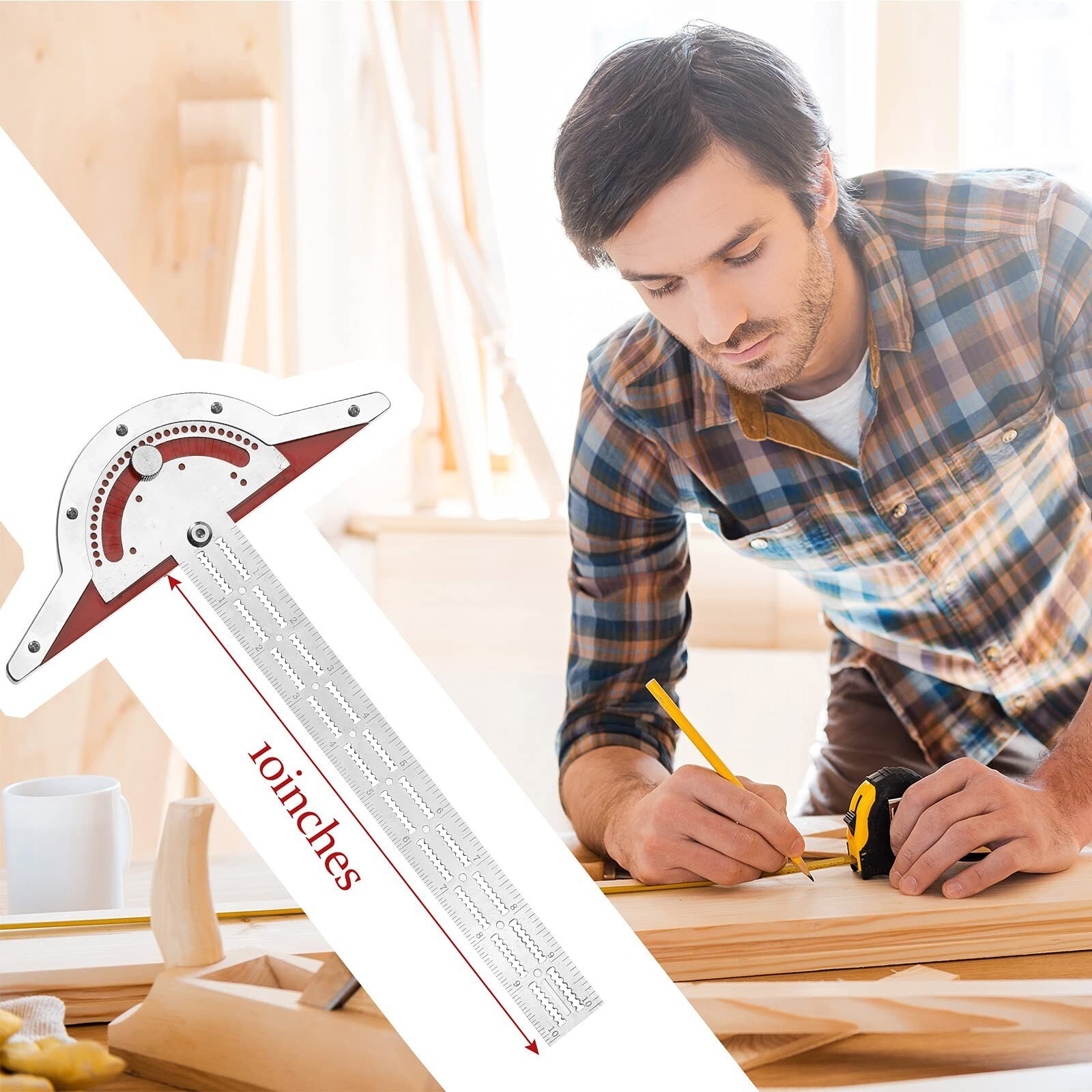 鑱?Woodworkers Edge Ruler鑱?/span>is a multifunctional device for length measurement and angle drawing. It can measure lengths and draw parallel lines at different angles and intervals easily, which will bring much convenience to your work. Each woodworking ruler is equipped with a鑱?strong data-mce-fragment="1">wall-mounted storage rack, which make it easy to store.鑱?strong data-mce-fragment="1">鑱?Woodworkers Edge Ruler鑱絠s an indispensable tool for every woodworkers and mechanics