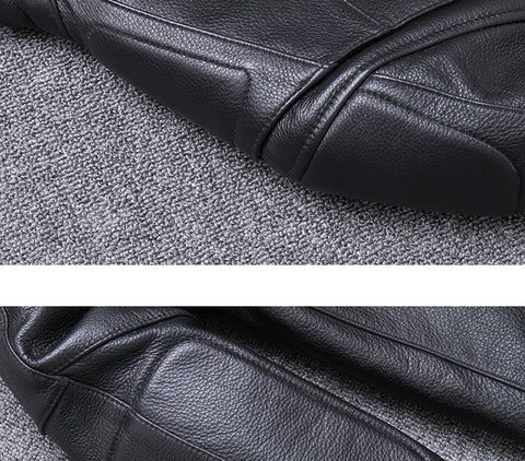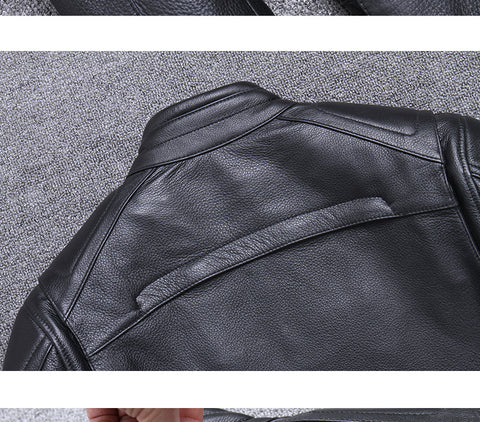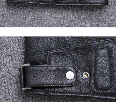 Classic Cowhide Leather Motorcycle Biker Jacket for Men