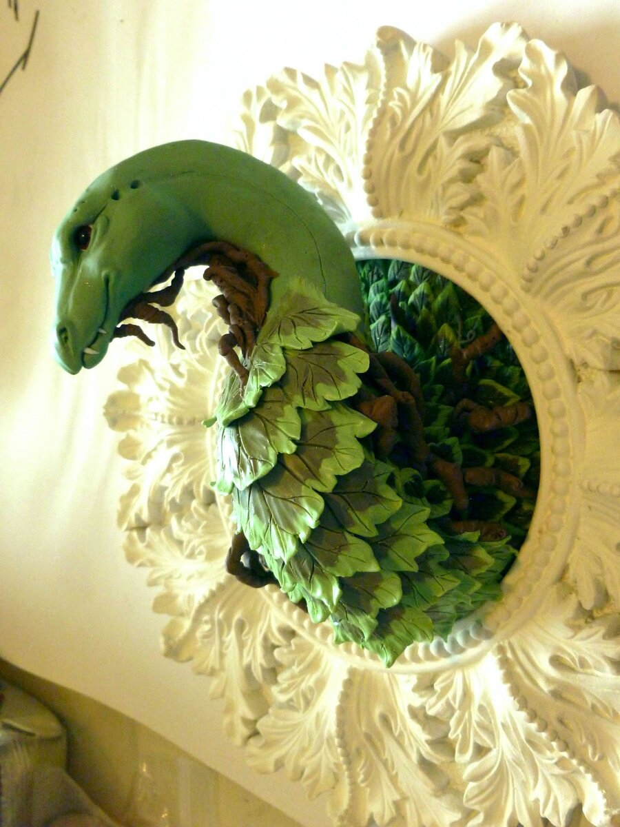 After the roots were all sculpted, I began incorporating each one into the leaves and along his neck. I even added a few to his throat and under his chin.