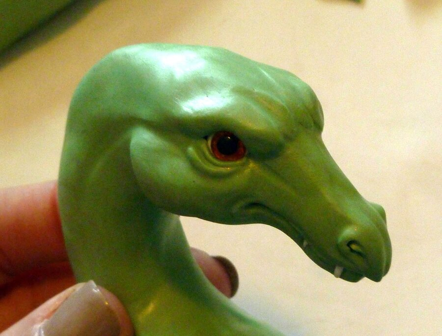 Once the headpieces were where I wanted, I resumed adding the leaf scales until I had the neck completely covered.