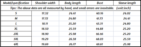 Size: S M L XL 2XL 3XL 4XL