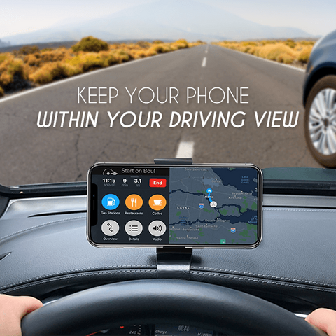 Clip the car smartphones holder on the dashboard and adjust the angle up to 120 degree.