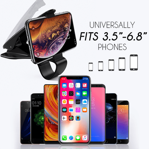 Universal Car Phone Clip Holder holds smartphones right above the dashboard by a simple clip. It ensures clear front driving view without obscuring鑱?strong>any viewpoint for 100% safe driving.