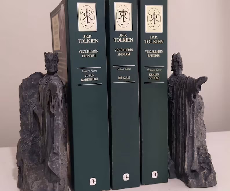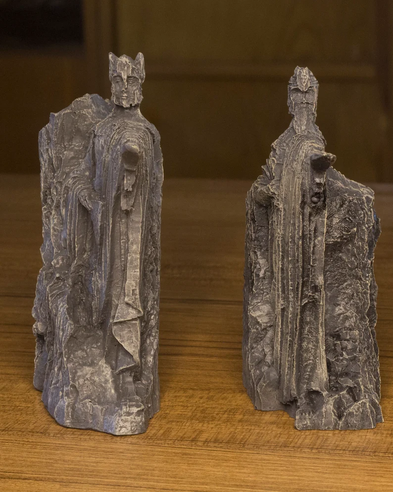 Each of the two figures bore a crown and a helm, with an axe in its right hand and its left hand raised in a gesture of warning to Gondor's enemies.